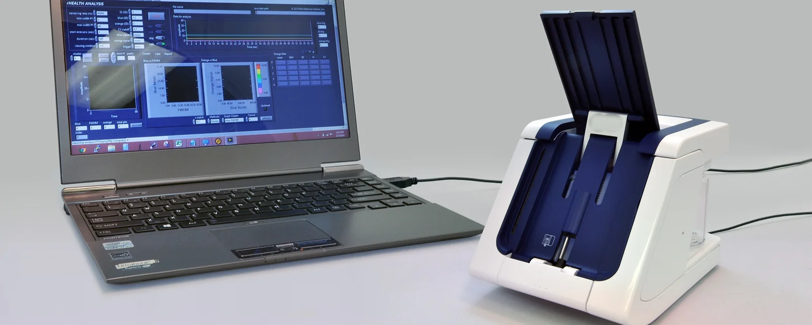 rHEALTH ONE with capture and viewer software. Flexible sample preparation in small volumes is followed by analysis by the rHEALTH ONE for cells, nanostrips.